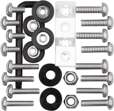 - Hardware kit includes standard and metric size screws, rattle stop fasteners, washers, plastic nuts, Rattle Stop hardware and locking anti-theft Star Pin fasteners with a matching key for the specific type of fasteners required
