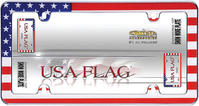 Cruiser Accessories USA Flag license plate frame says Proud to be an American!