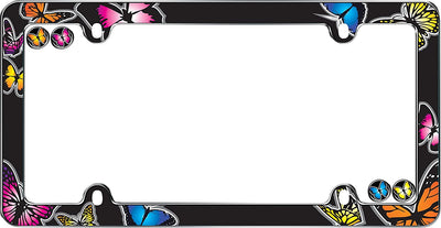 Cruiser Accessories Butterfly license plate frame features a flutter of colorful butterflies.