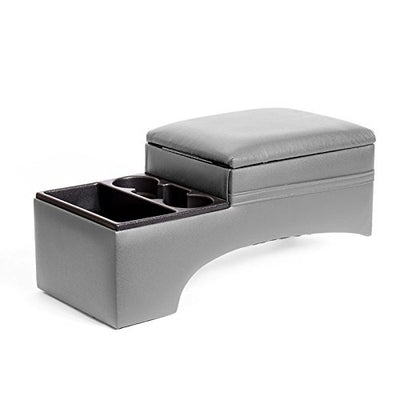 The original molded console that set the standard for the rest of the industry. Every feature is fully functional including a padded armrest for added comfort and a skirted bottom for a completely finished look. Two deep multi sized cup holders. Manufactured in the USA to the highest quality standards with a factory look leather texture finish on durable plastic resins.