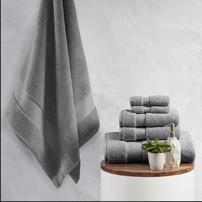 Home Outfitters Charcoal 100% Cotton 6 Piece Bath Towel Set , Absorbent, Bathroom Spa Towel, Glam/Luxury