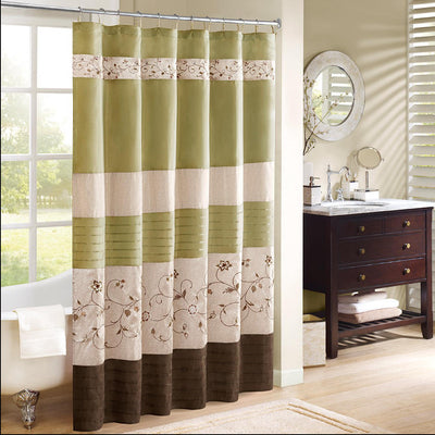 Home Outfitters Green Faux Silk Lined Shower Curtain w/Embroidery 72x72", Shower Curtain for Bathrooms, Transitional