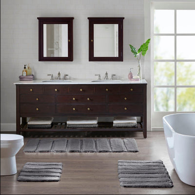 Transform your bathroom into a simple and stylish haven with our Madison Park Tufted Pearl Channel Rug. This solid tufted bath rug features a high-low stripe design with a light sheen and luster that adds rich dimension and texture for the perfect shabby chic touch your bathroom decor. Constructed from 100% macro-spun polyester fibers, each tufted bath rug is also durable for long-lasting, incredibly soft, and also OEKO-TEX certified, meaning it does not contain any harmful substances or chemicals for quality comfort and wellness. Machine washable for easy care and available in a soft palette of fade and stain resistant colors, this tufted bath rug is the perfect addition to complete any bathroom decor!