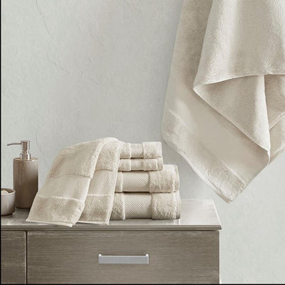 Home Outfitters Natural 100% Cotton 6pcs Bath Towel Set , Absorbent, Bathroom Spa Towel, Transitional