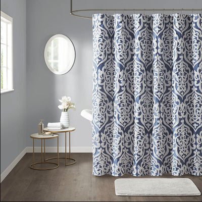 Home Outfitters Navy Jacquard Shower Curtain 72"W x 72"L, Shower Curtain for Bathrooms, Traditional