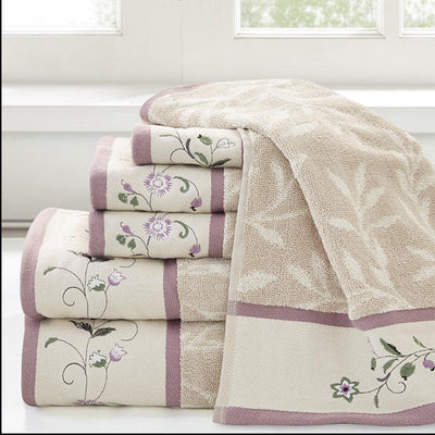 Home Outfitters Purple 100% Cotton Jacquard Embroidered 6pcs Towel Set , Absorbent, Bathroom Spa Towel, Traditional