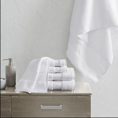 Home Outfitters White 100% Cotton 6pcs Bath Towel Set , Absorbent, Bathroom Spa Towel, Transitional