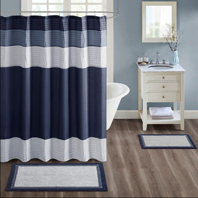 Home Outfitters Navy 100% Cotton Tufted Bath Rug 20"W x 30"L, Absorbent Bathroom Floor Mat, Transitional