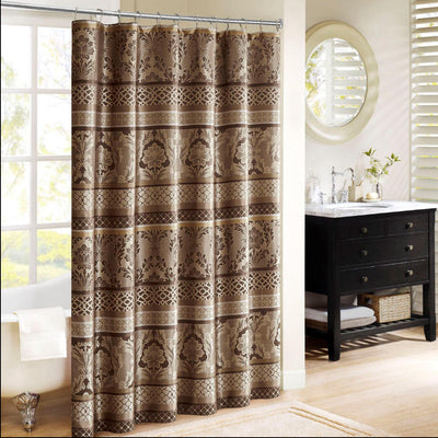 Home Outfitters Brown Polyester Jacquard Shower Curtain 72x72", Shower Curtain for Bathrooms, Traditional