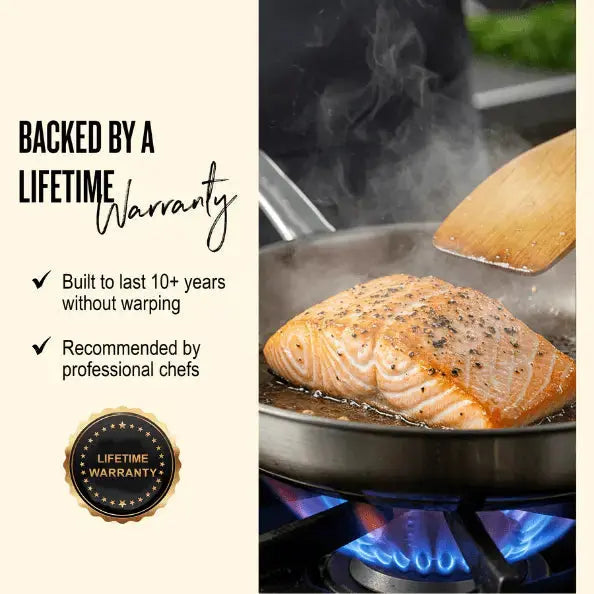 Engineered with fully bonded 5-ply stainless steel construction, delivers exceptional heat distribution, durability, and long-term performance — without coatings.