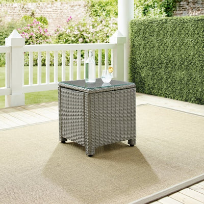 Crosley Furniture Bradenton Outdoor Wicker Tempered Glass Top Side Table, Gray