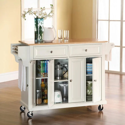 Crosley Furniture Full Size Kitchen Cart with Natural Wood Top, White