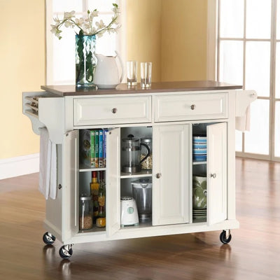 Crosley Furniture Full Size Kitchen Cart with Stainless Steel Top, White