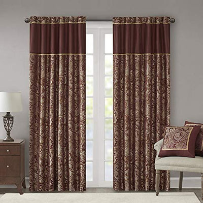 Madison Park Aubrey Faux Silk Paisley Jacquard, Rod Pocket Curtain with Privacy Lining for Living Room, Kitchen, Bedroom and Dorm, 50 in x 84 in, Burgundy