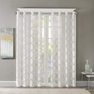 Madison Park Eden Single Curtain for Bedroom, Modern Contemporary Light Sheers for Living Room, Geometric Pattern with Grommet, 50x84, White