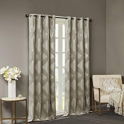 SUNSMART Bentley Total Blackout Curtains Window, Ogee Knitted Jacquard, Grommet Top Living Room Decor, Thermal Insulated Light Blocking Drape for Bedroom and Apartments, 50" x 84", Taupe