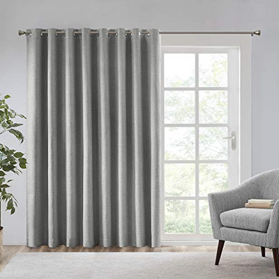 SUNSMART Maya Blackout Curtain Patio Single Window, Textured Heatherd Print, Grommet Top Living Room Décor, Thermal Insulated Light Blocking Drape for Bedroom and Apartments, 100x84, Grey