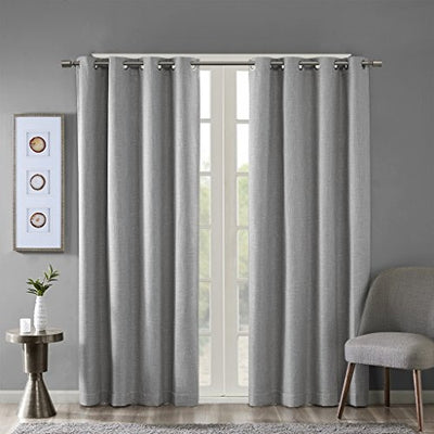 SunSmart Maya Blackout Single Curtain Patio Window, Textured Heatherd Print, Grommet Top Living Room Decor Thermal Insulated Light Blocking Drape for Bedroom and Apartments, 50x84, Grey