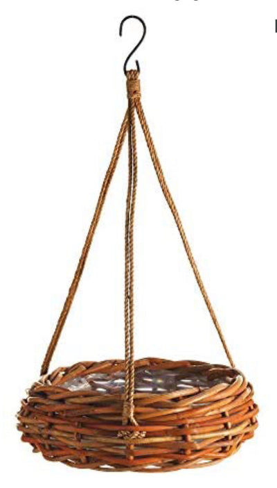 Generous in scale, this thickly woven rattan hanging basket is perfect for geraniums or ferns. Complete with a rustic metal hook, it adds height and dimension to your space.