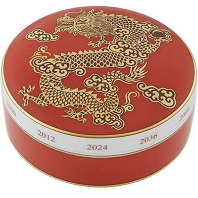 Golden Large Round Box Dragon from Vista Alegre. Elegant and functional, the pieces of the Golden collection features the symbols of the ancient Chinese zodiac, represented by twelve animals, real and imaginary. The Golden collection enhances these qualities with numerous engraved and gold-painted details, reminiscent of traditional Chinese designs. The pieces make a statement for both their artistic character and delicate mysticism.