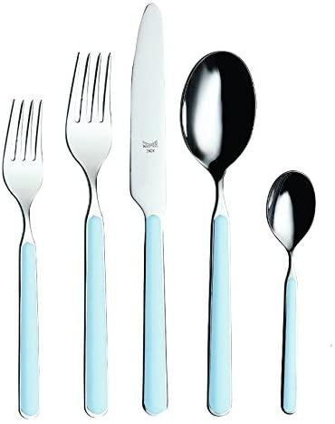 Made in Italy with the highest quality of 18/10 stainless steel and resin made with Nylon and Fiberglass. Colorfull, elegant and timeless shape. The Stainless Steel body goes all the way to the end of the handle. The 2 shelves that make the handle are not glued together but they are welded to become a whole piece. Knives have double serration for a durable sharpness. Dishwasher safe, durable and food safe. Life time warranty on the handle.