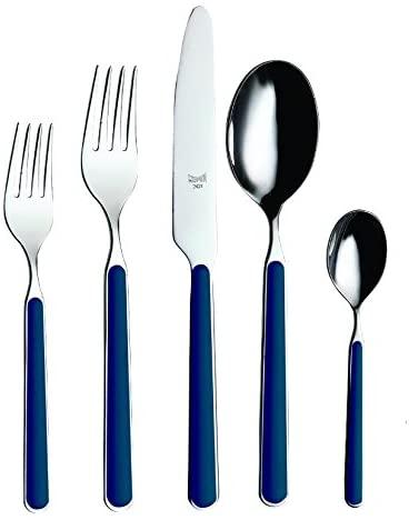 Made in Italy with the highest quality of 18/10 stainless steel and resin made with Nylon and Fiberglass. Colorfull, elegant and timeless shape. The Stainless Steel body goes all the way to the end of the handle. The 2 shelves that make the handle are not glued together but they are welded to become a whole piece. Knives have double serration for a durable sharpness. Dishwasher safe, durable and food safe. Life time warranty on the handle.