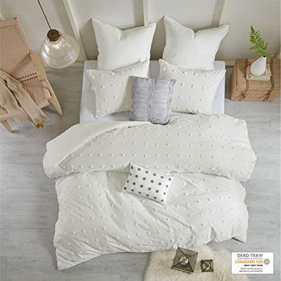 Urban Habitat Duvet Set 100% Cotton Jacquard, Tufts Accent, Shabby Chic All Season Comforter Cover, Matching Shams, Decorative Pillows Brooklyn, Ivory Full/Queen(88"x92") 7 Piece