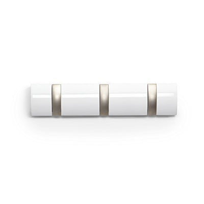Umbra Flip Wall Mounted Floating Rack – Modern, Sleek, Space-Saving Hanger with Retractable Hooks to Hang Coats, Scarves, Purses and More, 3, White