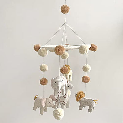 • NURSERY ESSENTIAL: Handcrafted pom-poms and safari animals delicately hover over your little one's crib or playpen to help encourage curiosity