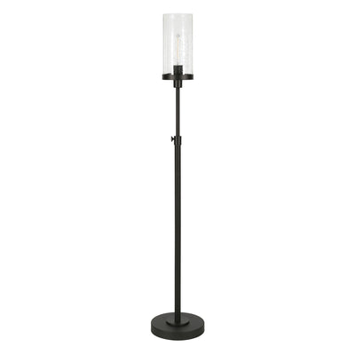 This 66" black torchiere floor lamp with clear seeded glass drum shade is a great way to add some brightness to any corner of your home. A gorgeous black metal base bring just the right amount of pizzazz to this fabulous lamp. The black of this lamp creates a nice contrast with the clear glass drum shaped shade. Add a soft warm glow to your space with this classic torchiere styled lamp. A straight pole extends upwards from a single base while the scooped shade shape refracts light upward and outward much like it's name sake,a torch. High quality design makes this a great lamp for not only lighting, but accenting a room with style. The perfect lamp to create just the right natural and soothing light in your space. 66" H x 11" W x 11" D
