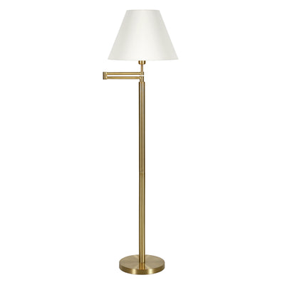 This 62" brass swing arm floor lamp with white frosted glass empire shade is a great way to add some brightness to any corner of your home. The lamp is made of sturdy metal and features a brass color. The brass base coloring infuses a warm and rich tone to your space. The brass of this lamp creates a nice contrast with the white fabric empire shaped shade. A stationary base marries with a flexible swing arm that allows you to extend and move the light to where you need it. High quality design makes this a great lamp for not only lighting, but accenting a room with style. Bring some lite and good vibes into your space with this updated and stylishly designed lamp. 62" H x 26" W x 16" D