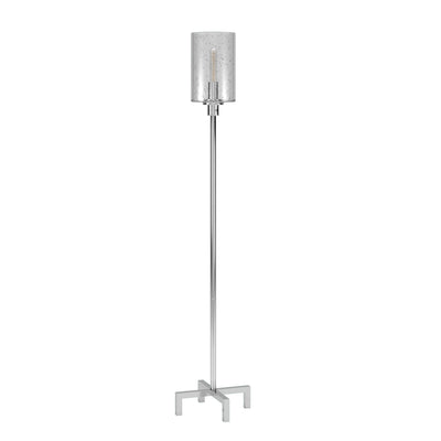Bring of level of elegance and charm to your space with this good looking 66" nickel torchiere floor lamp with clear transparent glass drum shade. A gorgeous nickel metal base bring just the right amount of pizzazz to this fabulous lamp. This good looking lamp includes a glass drum shaped shade. Add a soft warm glow to your space with this classic torchiere styled lamp. A straight pole extends upwards from a single base while the scooped shade shape refracts light upward and outward much like it's name sake,a torch. Use this lamp anywhere and elevate the look of the whole space. It is perfect for virtually any decor. 66" H x 13" W x 13" D