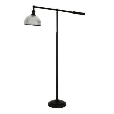 Truly a mix of design and functionality that doesn't compromise on style, this 58" black swing arm floor lamp with clear transparent glass dome shade will be a great addition to your space. A gorgeous black metal base bring just the right amount of pizzazz to this fabulous lamp. The coloration of the black lamp base creates a fashionable marriage with the the clear glass dome shaped shade. A stationary base marries with a flexible swing arm that allows you to extend and move the light to where you need it. High quality design makes this a great lamp for not only lighting, but accenting a room with style. Bring some lite and good vibes into your space with this updated and stylishly designed lamp. 58" H x 32" W x 11" D
