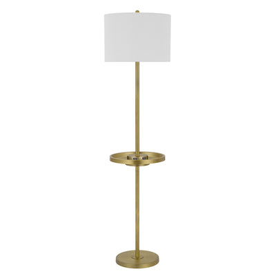 Add a bright anchor to your room with this 62" brass tray table floor lamp with white square shade. The lamp is made of sturdy metal and features a brass color. The brass base coloring infuses a warm and rich tone to your space. The lamp light itself is covered by a fabric, square shaped shade, making this a classy piece that will complement most any interior. A fresh and updated take on two classics, this tray table floor lamp offers lots of functionality in a compact footprint. Offering you a combination of lamp and end table together in one, this mighty accent is just what you need beside your sofa, favorite chair, desk, or bed. The light that this lamp throws is soft and warm to elevate the look of most any space in your home. The perfect lamp to create just the right natural and soothing light in your space. 62" H x 16" W x 16" D