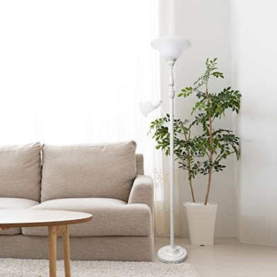 Torchiere Floor Lamp with Reading Light and Marble Glass Shades, White