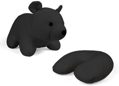 U pillow measures 12 by 10 by 35-inches, bear measures 13 by 7 by 7-inches
