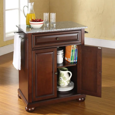 Crosley Furniture Alexandria  Granite Top Portable Kitchen Island/Cart in Mahogany Color