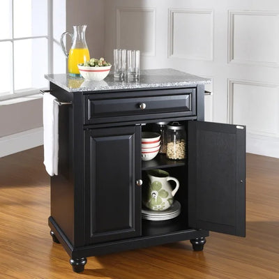 Crosley Furniture Cambridge Granite Top Portable Kitchen Island/Cart in Black Color