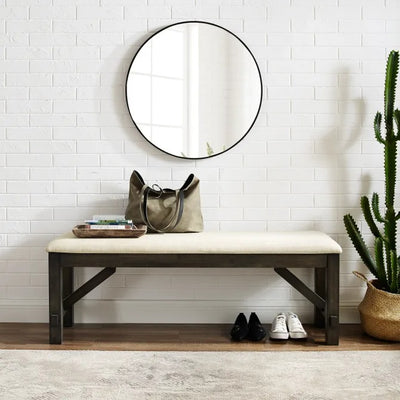 Sure to be a welcome addition to your modern farmhouse décor, the Hayden Bench brings rustic style to your home. Featuring a classic linen upholstered seat, this bench will enhance your dining room or entryway with its comfortable design. Both sturdy and versatile, the Hayden Bench is a seating option that will last for years to come.