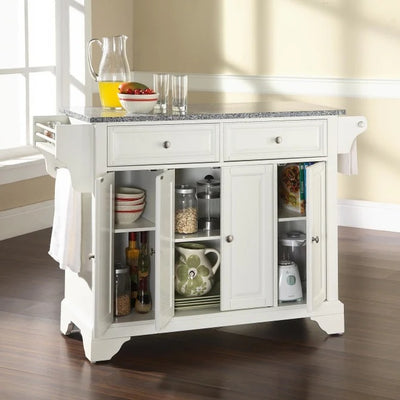 Crosley Furniture Lafayette Full Size Kitchen Island with Solid Gray Granite Top, White