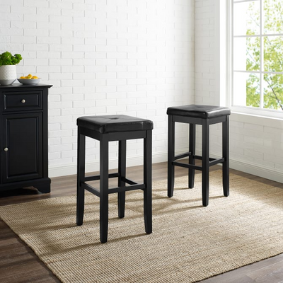 Crosley Furniture Upholstered Square Seat Bar Stool (Set of 2), 24-inch, Black