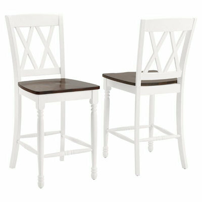 Classic seating goes to the next level with the Shelby 2pc Counter Stool Set. Beautifully crafted with a molded wood seat and double x design on the back, this stool set is a perfect addition to a breakfast bar or kitchen island. With traditional turned front legs, the Shelby 2pc Counter Stool Set adds charm and function to your kitchen or dining space.