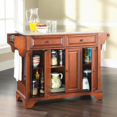 Crosley Furniture Lafayette Full Size Kitchen Island with Solid Gray Granite Top, Classic Cherry