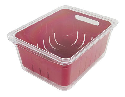 Kitchen Spaces KSCB12-AMZ Colander Bin Stackable Food Storage Organizer for Fridge, Freezer, and Pantry, 8.8" x 6.8" x 3.9", Red & Clear
