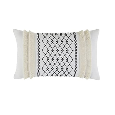 The INK+IVY Bea Embroidered Cotton Oblong Pillow with Tassels brings a charming look to your home décor. Made from 100% cotton canvas, this oblong decorative pillow features an embroidered geometric design in the center and chenille fringes that add dimension to the rich ivory base. Elegant tassels at the corners add a beautiful accent, while a hidden zipper closure secures the ultra-soft filling and creates a clean edge. Place this embroidered cotton oblong pillow on the top of your bed or sofa to give your décor a chic mid-century touch.