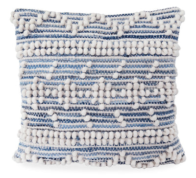 Instead of disposing excess denim, this pillow is recycled and repurposed into strips that are handwoven to create this unique pattern that is both durable and eco-conscious. A concealed zipper closure makes it easy to remove the cover and clean as needed. Insert included. Matching bench and rug available in the Anaya Handwoven Collection.