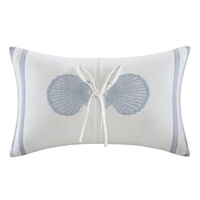 - The Harbor House Crystal Beach Oblong Pillow is the perfect finishing touch to the bedding collection. The pillow features a blue embroidered shell motif on a white background creating a coastal theme in your bedroom.