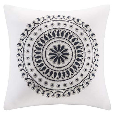 INK+IVY Fleur Fashion Cotton Throw Pillow, Csual Embroidered Square Decorative Pillow, 18X18, Navy