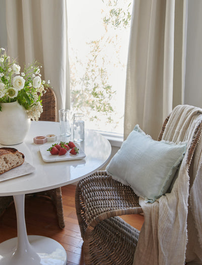 This Light Blue So Soft Linen Pillow is Soo soft- you won’t believe its linen! This yarn has a slight nub which gives it a beautiful natural texture. Edges have a self-fringe on all sides of the Light Blue Linen Pillow.