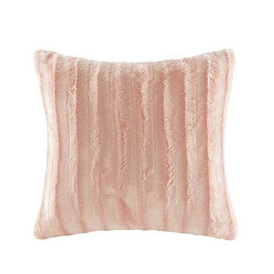 Madison Park Duke Luxury Faux Fur Square Throw Pillow Premium Soft Cozy For Bed, Coach or Sofa, 20x20, Blush